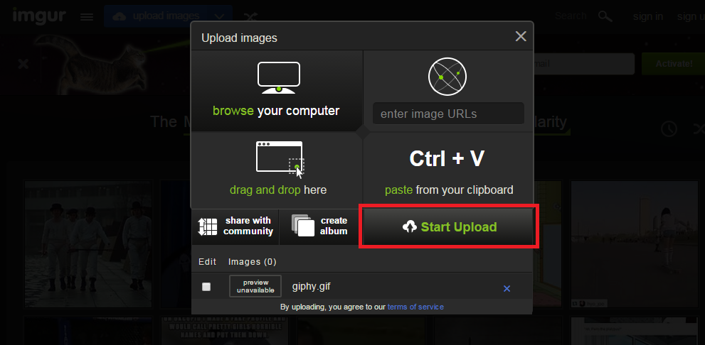 - Phải upload lên các trang web upload ảnh online như ImageShack, Picasa, Imgur giphy ,...(mình khuyến khích dùng Imgur cho nhanh, link ngắn gọn)